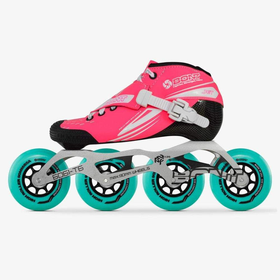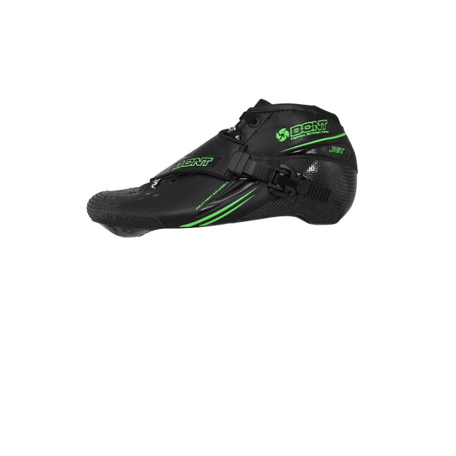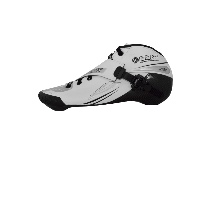 The Jet follows a long linage of Bont inline speed skates. This skate evolved from the Bont Sharkie and has sold over 1.4 million pairs since it was first launched in 1980. The boot has had a lot of upgrades since then as it has had to adapt to higher speeds and larger wheels. The Jet inline speed skate is now around 40% stronger than when it was first made thanks in part to the use of carbon fiber. Even though the manufacturing process of making a one-piece-boot is longer and more expensive than that of a two piece boot, we still make it the same way it has been made since 1980.