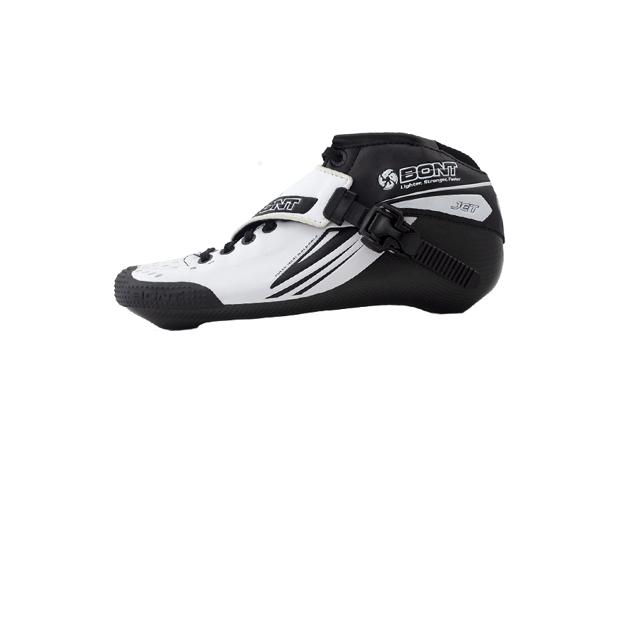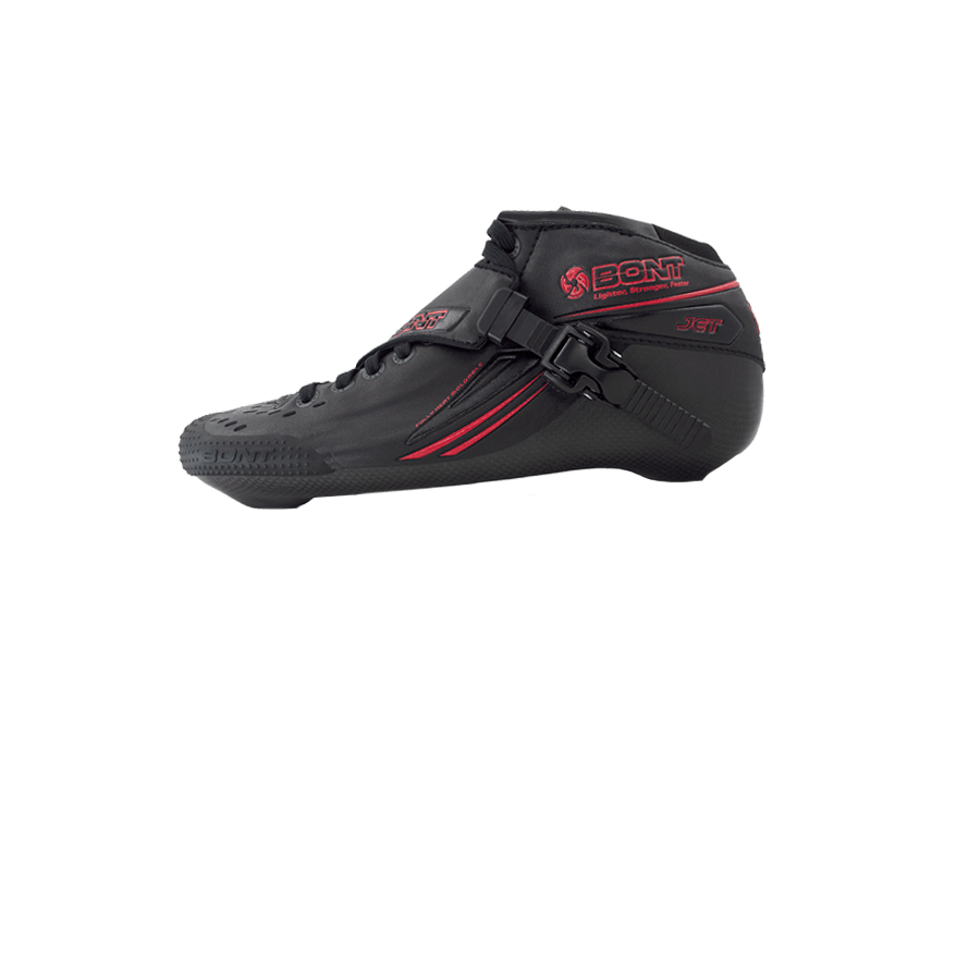 The Jet follows a long linage of Bont inline speed skates. This skate evolved from the Bont Sharkie and has sold over 1.4 million pairs since it was first launched in 1980. The boot has had a lot of upgrades since then as it has had to adapt to higher speeds and larger wheels. The Jet inline speed skate is now around 40% stronger than when it was first made thanks in part to the use of carbon fiber. Even though the manufacturing process of making a one-piece-boot is longer and more expensive than that of a two piece boot, we still make it the same way it has been made since 1980.
