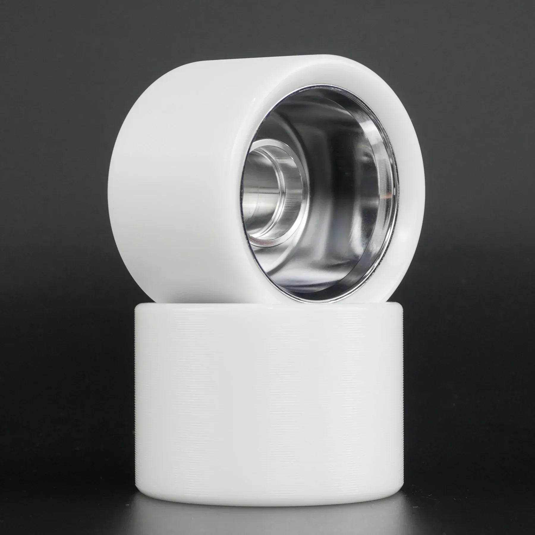 Each hub is electroplated in silver, giving the wheel a mirror-like finish that looks as fast as it performs. The polished surface adds a touch of premium style that stands out under the rink lights, matching its professional-level performance with a sleek aesthetic.